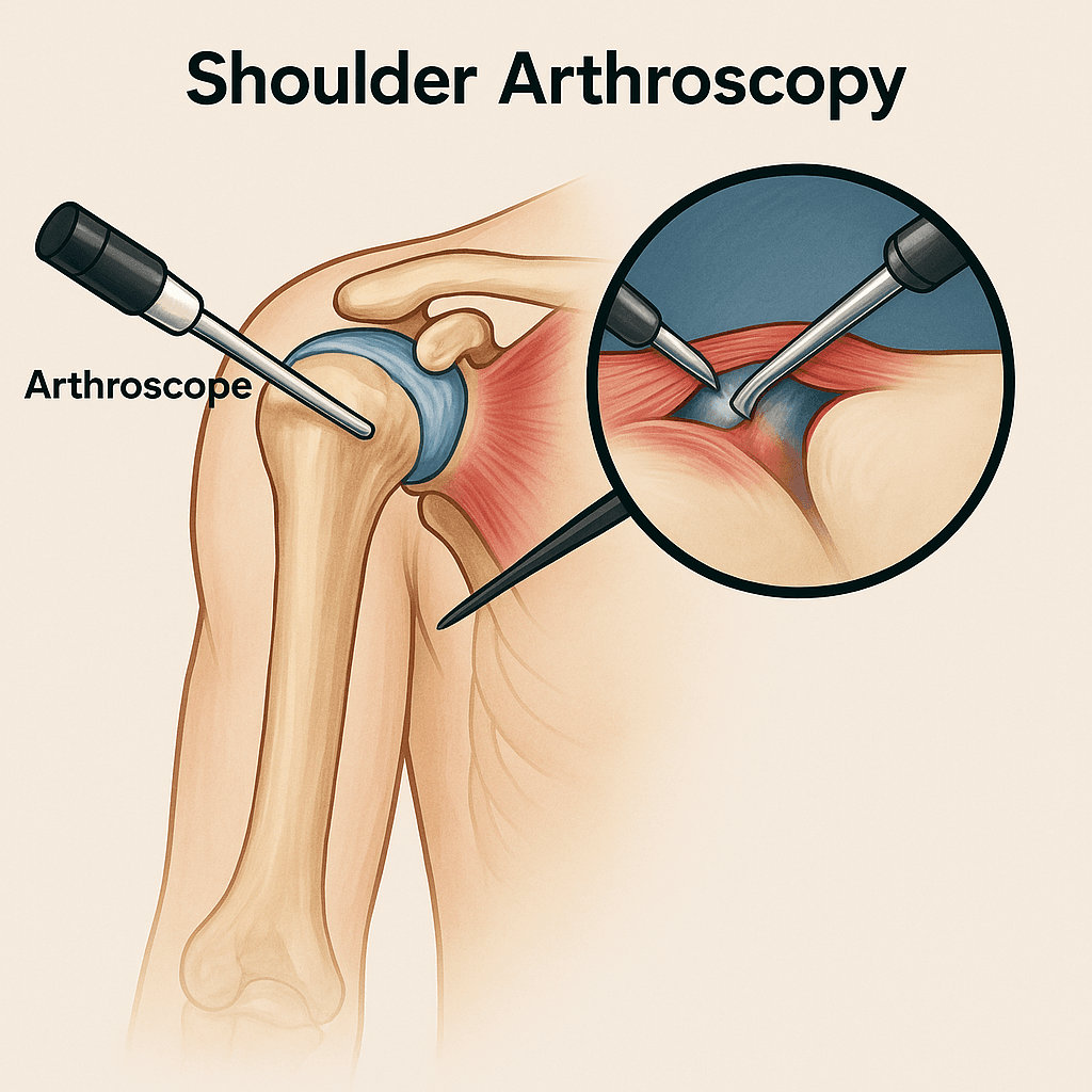 عملية تنظير الكتف يقوم بتعريفها مستشفى Cleveland Clinic[1] على أنها جراحة طفيفة التوغل حيث يتم فيها إجراء تدخل طبي عبر الشقوق الصغيرة التي يحدثها الطبيب بدلاً عن الشقوق الجراحية الكبيرة المستخدمة في الجراحات التقليدية، من مزايها أن الألم الخاص بها أقل بعد الجراحة كما أن ندباتها صغيرة وكذلك أقل وضوحاً، نزيف أقل وفترة تعافي أسرع ومخاطر العدوى كذلك تصبح أقل.